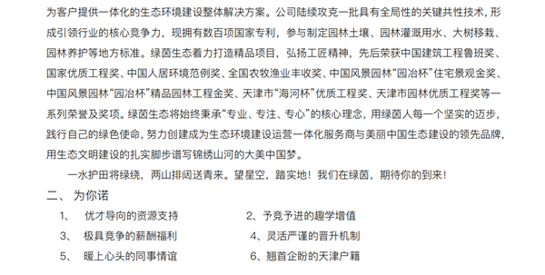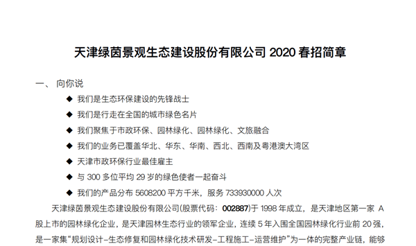 天津绿茵景观生态建设股份有限公司2020春招简章