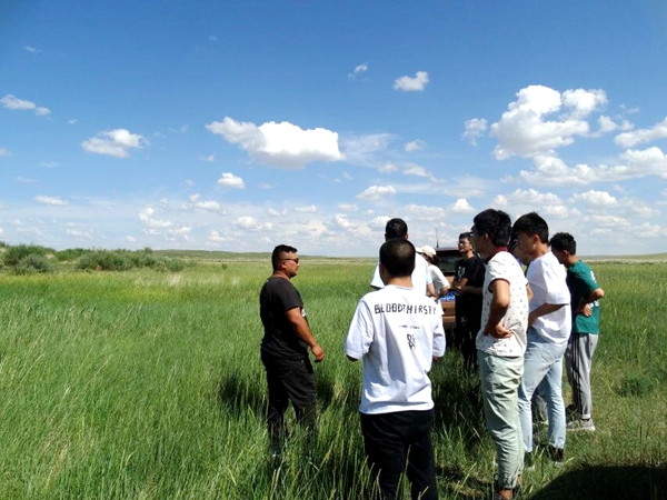 目的地处于边境地区的阿尔塔拉嘎查,到达之后,在牧民宝音的热情接待下,同学们到达了治沙效果显著的草原地区。根据介绍,当地原两万多亩的草原在气候变迁及其他因素影响下,沙化现象十分严重,而且沙化面积持续扩大。在2000年左右,在党中央的大力支持下,宝音的父亲带领全体牧民利用当地条件,积极开展防沙治沙工作,用飞机播撒适宜生长的沙柳种子,最终沙地变成了如今的绿洲。宝音讲到:“从小看着父亲,无论条件多么艰苦,仍然坚守在防沙治沙第一线,给了我很大的触动,我也将为了草原生态的持续发展,要坚持在防沙治沙的最前线!”