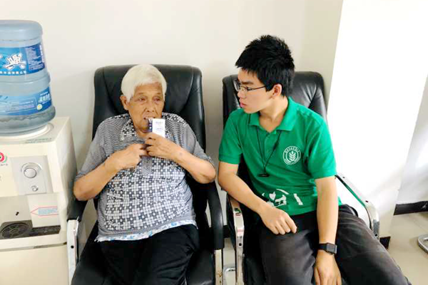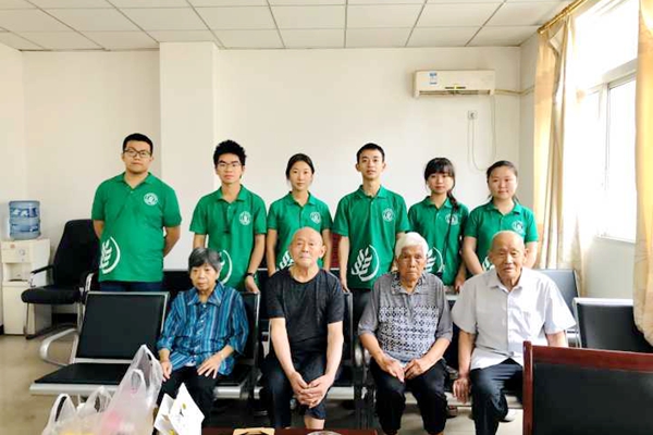 与赵爷爷攀谈了一会后,王家成爷爷,余延芝婆婆,邓秀英婆婆也来到了活动休息室。工作人员告诉我们,他们是刚下楼遛弯回来,老人在这里生活起居都有专人照料,但却很少有人与他们交流,理解他们的内心世界,这里的老人都是身边所有亲人都已逝去,只留他们孤单一人。王爷爷今年已经97岁了,他的父亲曾参加过抗日战争,在战争中牺牲,他便成为烈士遗孤,当实践队队员问及他父亲的故事时,他张了张嘴,含糊的说着些队员们无法来理解的语言,照顾他们的阿姨解释道:“老人年纪大了,舌头啊,就不听使唤了,你现在问他小时候的事情,他可能都不记得了。”说到这里,阿姨也有些唏嘘,不知是为老人的境遇惋惜还是哀伤。