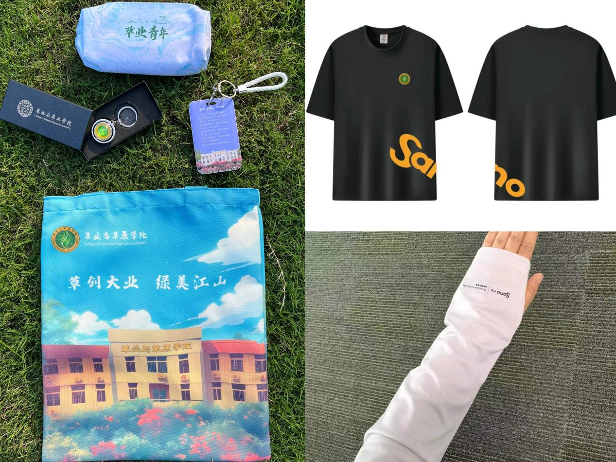 草业学院精心准备了充满学院特色的入学大礼包,其中包括学院专属帆布袋、本研专属卡套、个人钥匙扣、定制笔袋以及萨诺(杨凌)现代动物营养有限公司赞助的校企合作纪念T恤和冰袖。礼包以草绿与天蓝为主色,充分利用院徽、学院大楼等具有学院特色的标志,由师生共同设计完成,不再拘泥于常规,兼具美感与实用,在保证审美在线的同时丰富了实用体验,让同学们感受到浓浓的归属感。