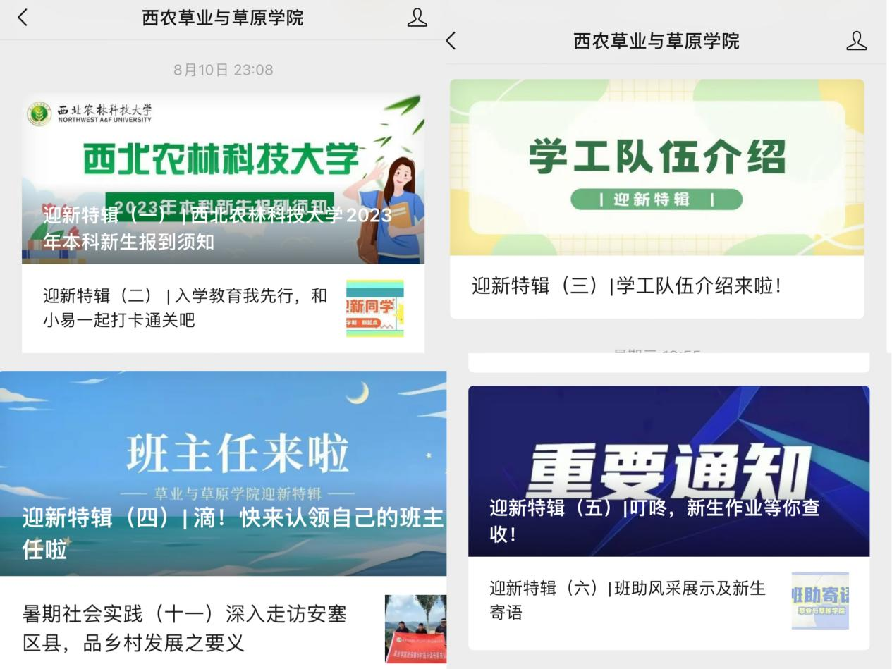 草业学院认真筹备2023级新生迎新工作,通过建强队伍、思想引领、广泛宣传、新生礼包等多种方式开展新生入学教育前置工作,有力度、有深度、有广度、有温度的暖新服务助力新生顺利入学。
