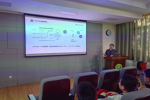 孙宗毅的讲解浅显易懂,图文并茂,报告结束后对同学们的提问进行了耐心的解答,大家纷纷表示收获良多。草业学院研究生崔祎琳同学表示:“听取了武汉希望组生物科技有限公司计算中心副总监孙宗毅的报告,让我学习到T2T基因组、泛基因组在植物中的应用,明白了基因组的相关研究在植物遗传改良、重要功能基因挖掘和遗传印记等方面的重要作用。”此次报告会为学院师生提供了一次学习生物信息学的机会,使学院的学术报告活动更上一层楼,相信这次报告会将为学院的学术研究提供更为开阔的研究思路,为学院师生提供更为广阔的学术视野,帮助同学们更好地开拓科学研究的道路。