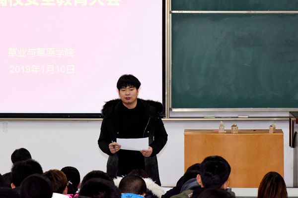 会上,辅导员张士军为学生解读了本科生学籍管理办法,提醒学生认真做好复习,严肃对待考试。寒假离校安全方面,从离校和返校的注意事项和安全要求做了讲解。最后,对寒假社会实践“西北乡村调研”等活动进行安排,鼓励学生利用好寒假时间,积极参加实践活动,全面发展自我。