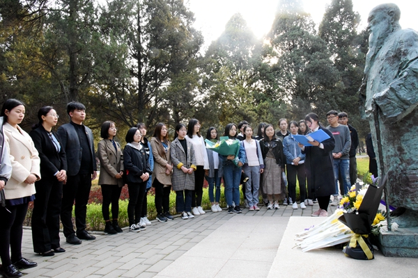 清明节是中华民族重要的传统节日之一。为了传承和弘扬中华民族优秀传统文化,增强文化自信,增强学生党员的实践教育,提升党性修养,草业学院将传统节日与党员教育相结合,4月3日下午,组织开展学生党员“红色清明”主题党日活动,学院党总支书记苏蓉、党务秘书陈忱、全体学生党员在北校区三号教学楼于右任、辛树枳塑像前开展缅怀纪念先贤前辈活动。