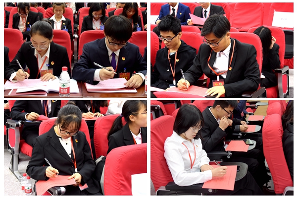 大会主席团成员严俊同学宣读大会监票人、计票人名单并由大会审议通过