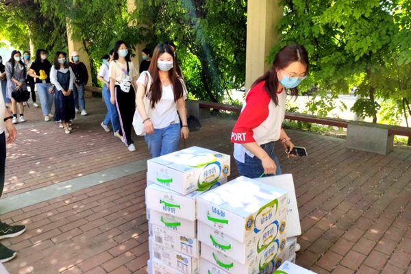 学生有序领取慰问物资