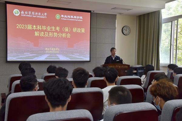为进一步提升学院人才培养水平,推动考(保)研工作提质增效,5月20日上午,学院在228会议室召开2023届本科毕业生考(保)研政策解读及形势分析会。草业学院副院长杨培志,党委副书记阮鹏,辅导员张士军、黄巾凌以及2023届全体本科生参加了会议。会议由阮鹏副书记主持。