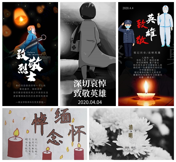 4月4日上午10时,大街小巷笛声长鸣,警报拉响,全国人民对抗击新冠肺炎斗争牺牲战士和逝世同胞深深默哀。草业学院依托网络党、团支部组织全体学生默哀致敬。各网络党、团支部以线上追悼,观抗击疫情短片,分享抗“疫”故事,话抗“疫”感人人物等多种方式开展“清明追思,家国永念”主题活动,活动中,同学们纷纷以分享诗词书法,制作追思海报、视频,文字感想表达等多种方式表达对逝世英雄的哀悼和敬意。